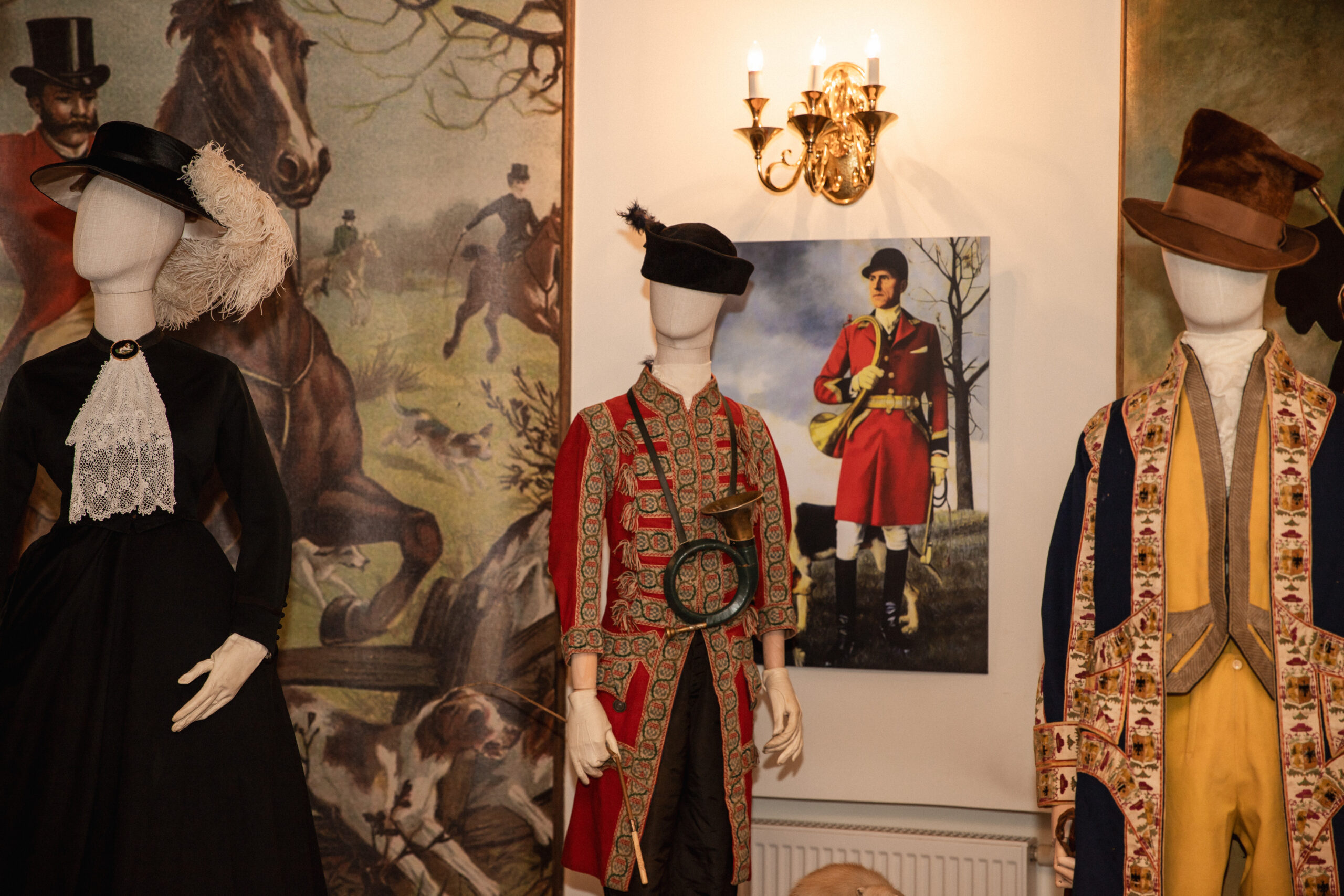 Medžioklės tema sena kaip pats pasaulis – žmonės medžiojo mamutus, krokodilus, lokius, lapes. Seniausias parodoje pristatomas portretas datuojamas XVII amžiumi, o naujausias kostiumas sukurtas XX a. 9-ajame dešimtmetyje.